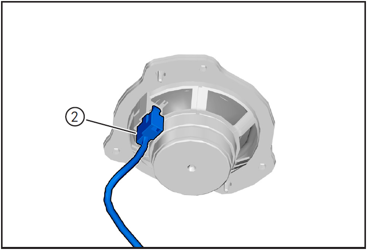 - 安装扬声器插接器②,直至听见“咔哒”声即安装到位。