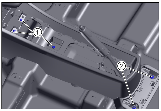 - 使用10mm套筒安装副仪表板2个固定螺母(1)。