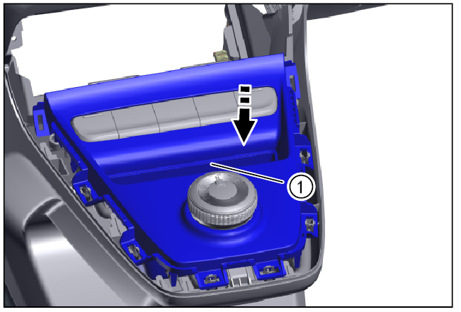 - 将开关安装板面板①卡入仪表板,确保开关安装面板①安装到位。